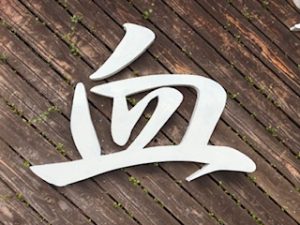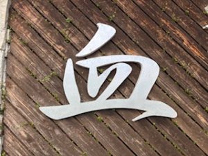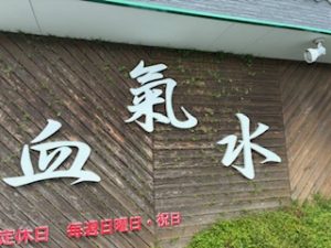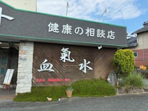 キュートの表駐車場の方の壁の「氣‣血・水」のアルミボードの白色が剥げてきており